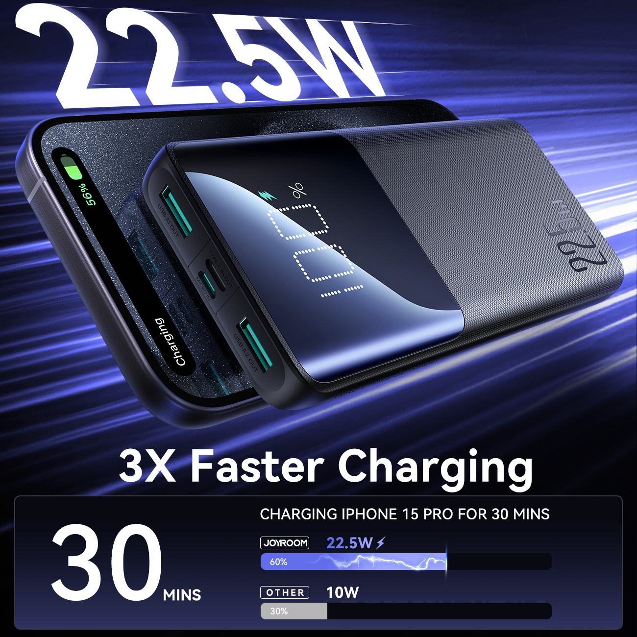 What sets this power bank apart is its ability to deliver lightning-fast charging in a sleek, compact design. With cutting-edge quick-charge protocols, it powers your devices efficiently while maintaining safety and durability. The addition of a smart digital display elevates convenience, making it easier than ever to track battery levels and charging status.