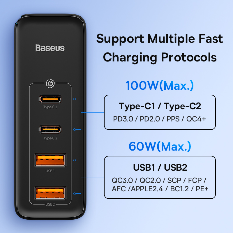 - GaN Technology: Provides a compact, lightweight charger with powerful 100W output, reducing heat while delivering maximum efficiency.