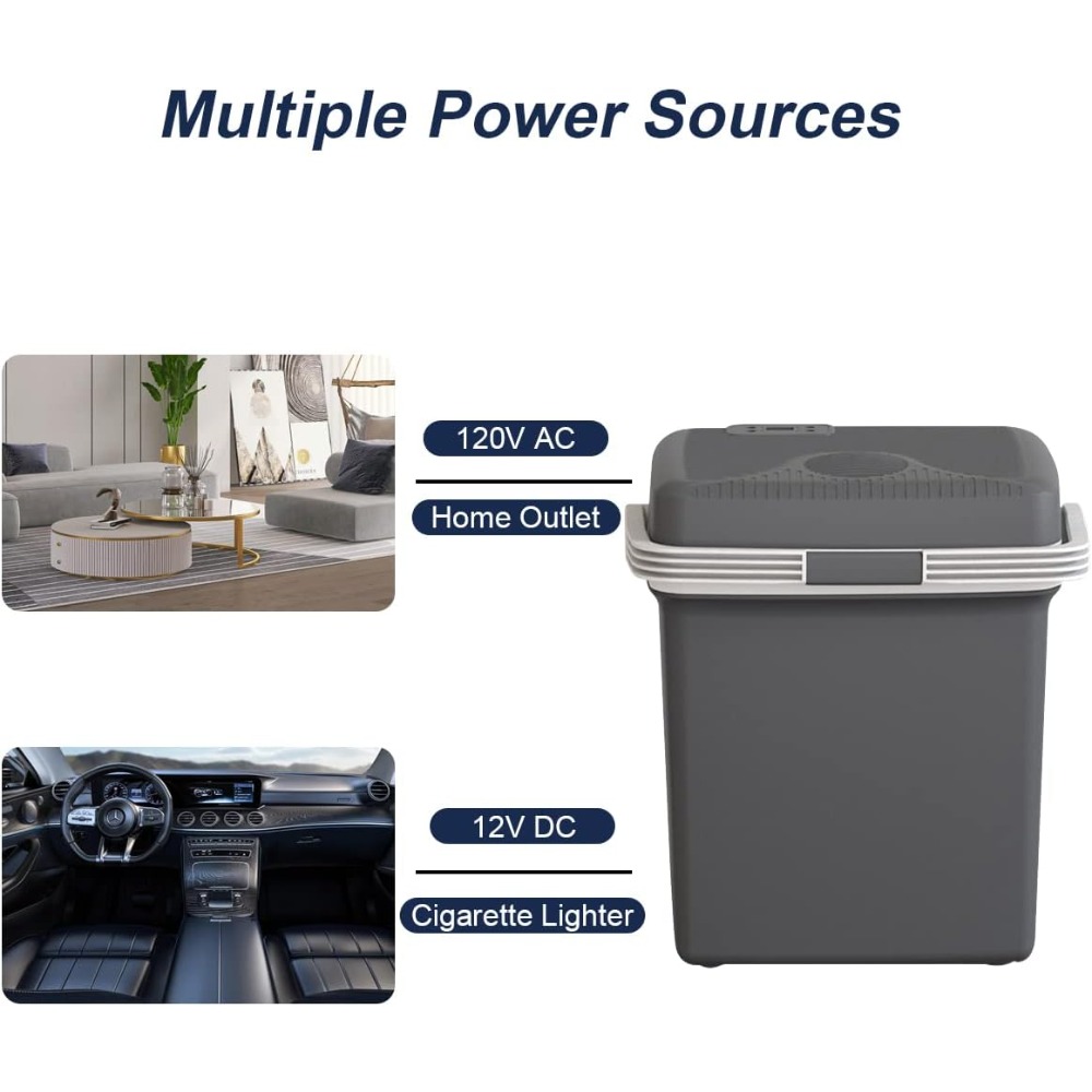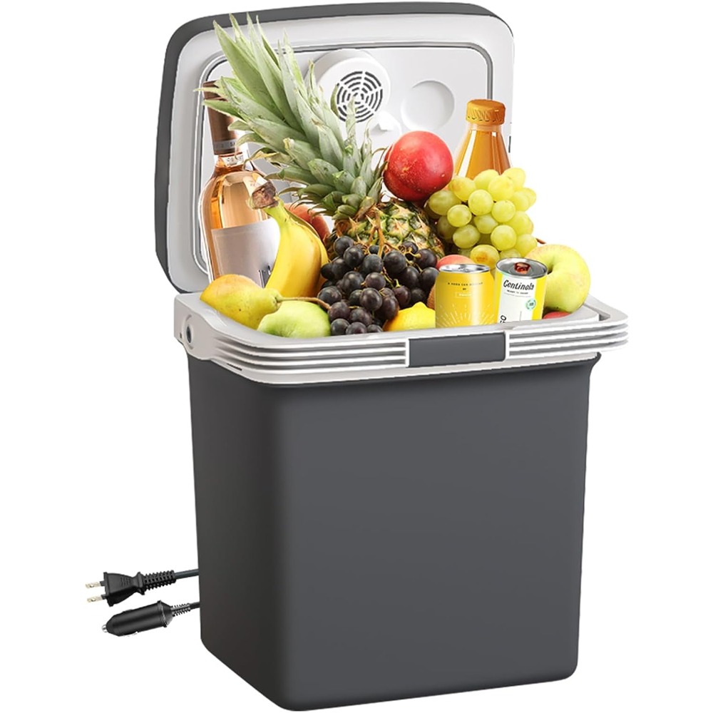 Make every road trip, camping adventure, or picnic more enjoyable with this 28 Quart Electric Cooler and Warmer. Whether you’re planning to keep drinks cold or meals hot, this portable thermoelectric cooler is designed for ultimate convenience. Featuring both AC and DC power adapters, you can effortlessly switch between home and car use. With a 28-quart capacity, this cooler can store up to 30 cans of your favorite beverages, plus snacks, making it the perfect travel companion for any adventure. The compact design fits easily in your vehicle, ensuring you have everything you need while on the go.