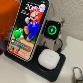 This charging stand is a staple at my work desk. The convenience of charging all three devices in one spot is unmatched. It’s a lifesaver, especially during travel, keeping everything organized and accessible