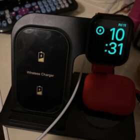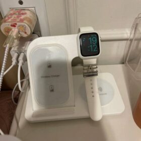 I chose this charging station out of necessity, and it’s been a great decision. It’s cleared the clutter of multiple wires from my space, allowing me to charge my phone, watch, and earpods together swiftly. It’s an excellent product for its price