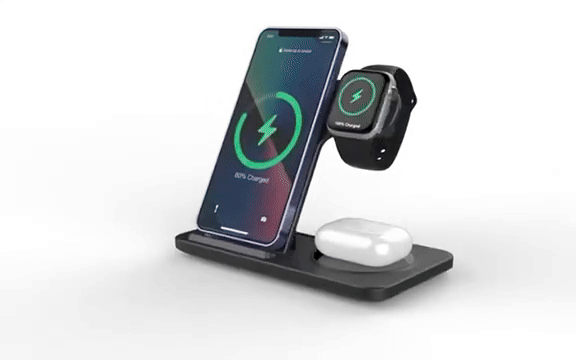 Introducing our state-of-the-art 3-in-1 wireless charging stand – an epitome of convenience combined with cutting-edge technology. Designed for the modern tech-savvy individual, this charger seamlessly powers your iPhone, iWatch, and AirPods simultaneously, eliminating the chaos of tangled cords and multiple adapters. Whether you’re at home, in the office, or on-the-go, this sleek, foldable charger ensures you stay connected without a hassle.