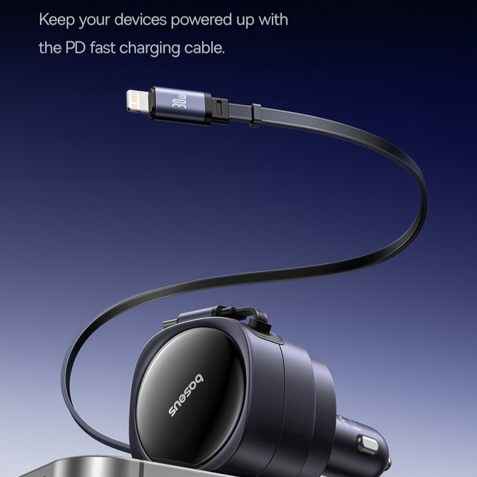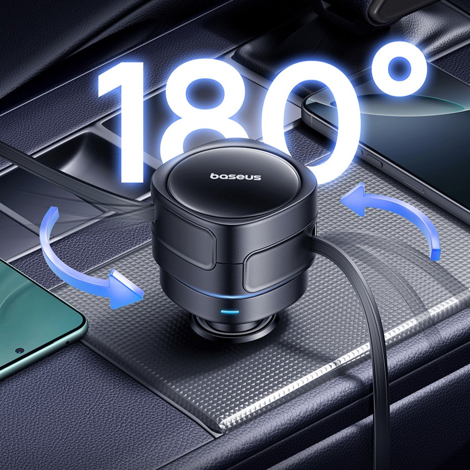This compact charger plugs effortlessly into your car’s lighter slot, giving you two powerful USB outputs to charge multiple devices at once. Its retractable cable system allows you to keep your car organized while ensuring that the cables never get tangled. Whether you’re charging your iPhone, tablet, or other USB-powered devices, this charger has you covered with up to 90W of output power, delivering a fast and reliable charge every time.