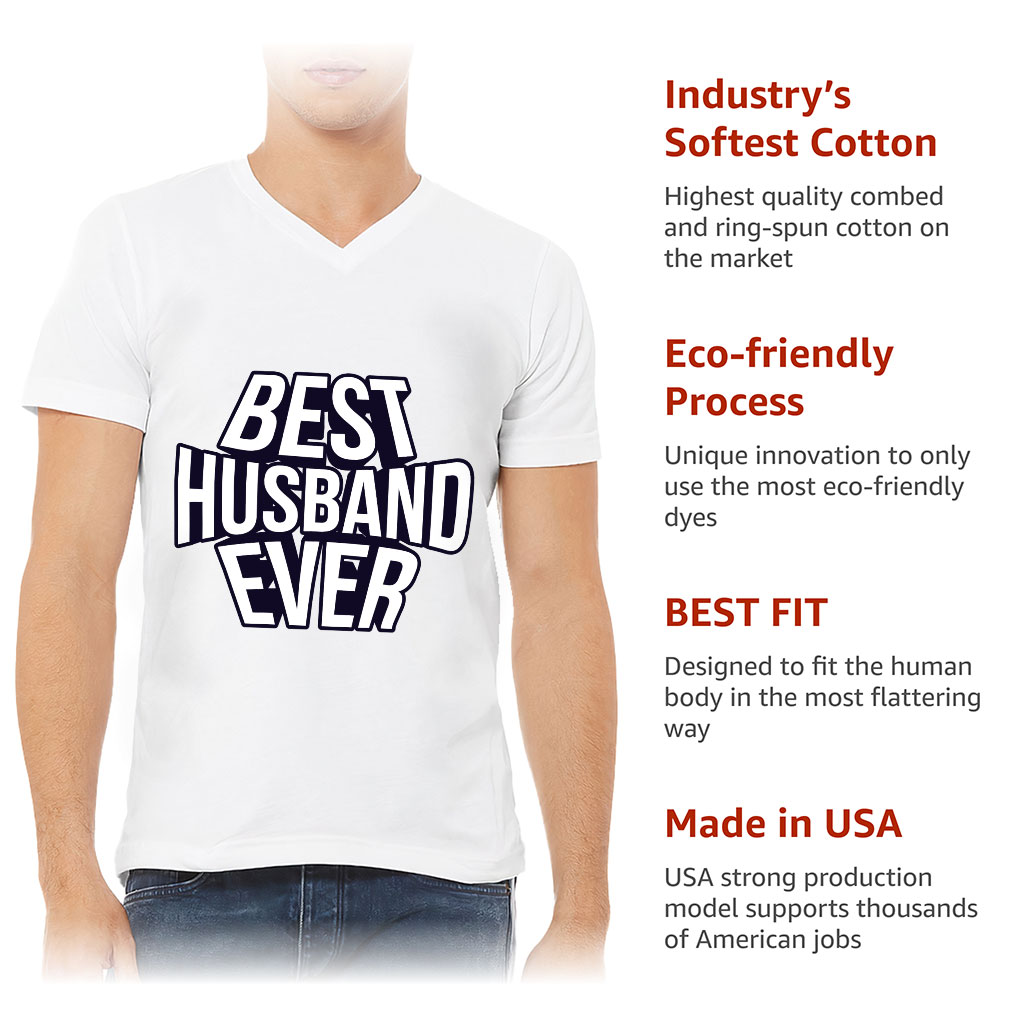 Best Husband Ever V-Neck T-Shirt is proudly made with 7x less water than average manufacturers, in recycle-friendly facilities that also guarantee zero sweatshop conditions.