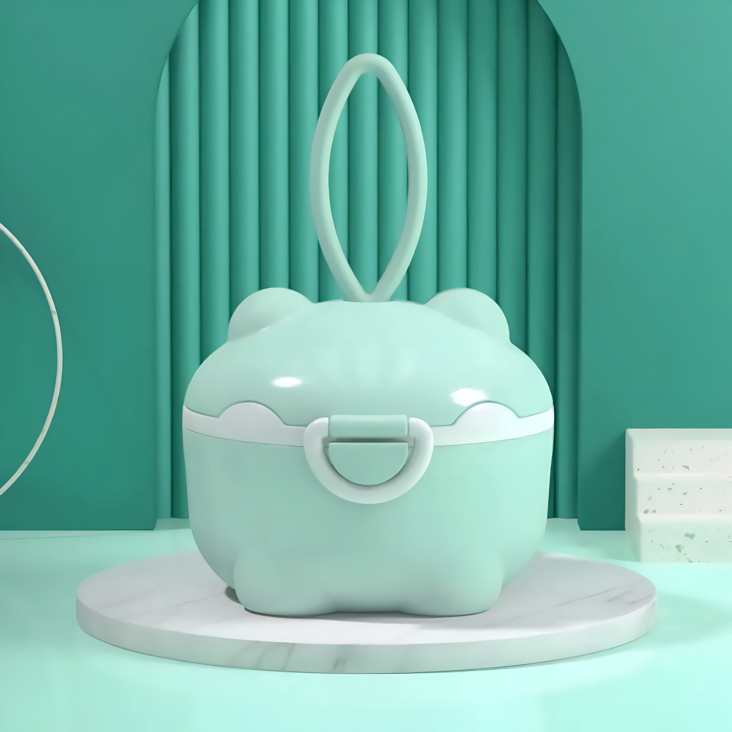 This baby milk powder container stands out for its practicality and design. The double sealing system ensures the contents remain dry and safe, while the BPA-free construction means you’re giving your baby the best. Whether you’re preparing baby formula or storing snacks, this container is built to meet the needs of busy parents. Its compact design makes it easy to fit into diaper bags, strollers, or your kitchen, offering convenience wherever you go. Plus, the soft pink and green colors give it a stylish, modern touch.