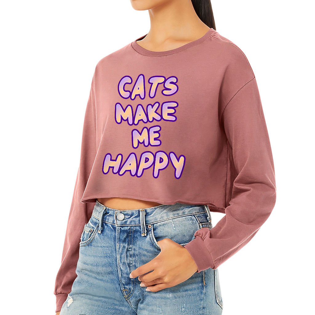 Cats Make Me Happy Cropped Long Sleeve T-Shirt
