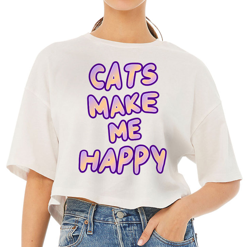 Cats Make Me Happy Women’s Crop Tee Shirt