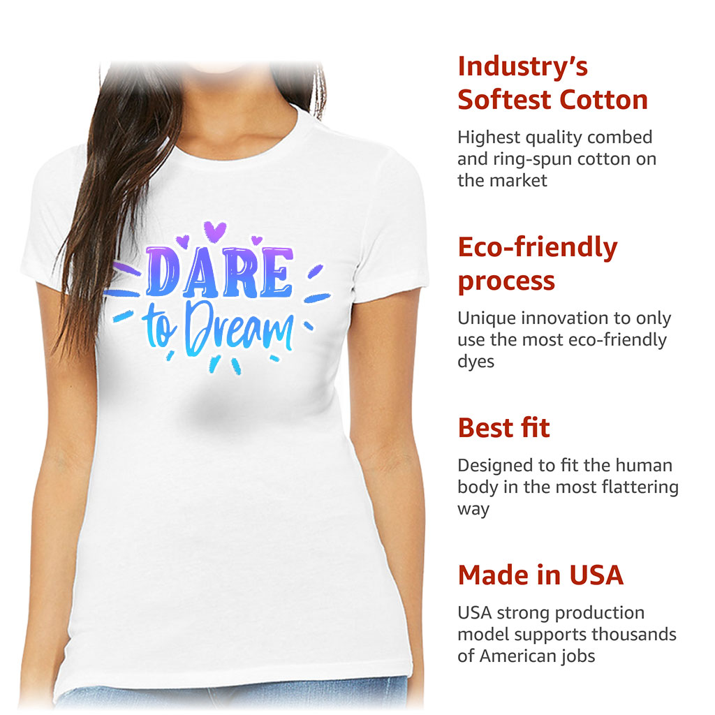 Dare to Dream Slim Fit T-Shirt fits like a well-loved favorite, featuring a slim feminine fit, crew neck, short sleeves and superior combed and ring-spun cotton. This t-shirt feels amazing all day long. Our products provide the highest standards of quality and comfort.