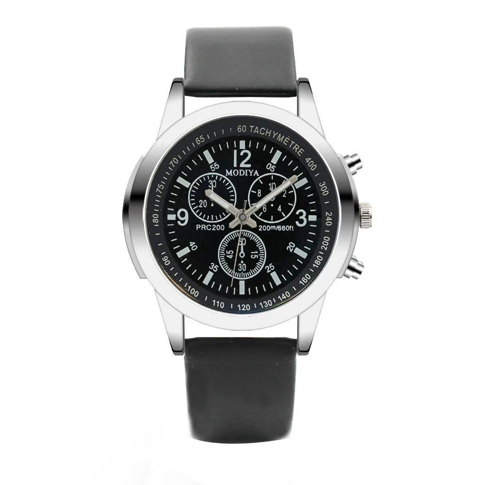What sets our Quartz Men’s Watch apart is its blend of elegance, durability, and affordability. The blue glass face provides a unique look that’s sure to catch eyes, while the faux leather strap adds a touch of classic sophistication. Its lightweight design ensures comfort throughout the day, and the non-waterproof build makes it suitable for everyday wear, avoiding the risk of damage from casual water exposure.