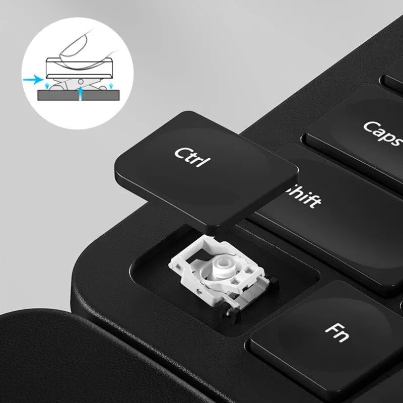- Quiet typing experience with tactile feedback