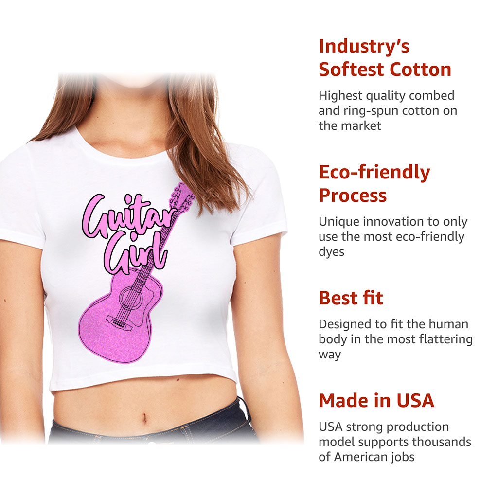 Guitar Design Women’s Cropped T-Shirt is no ordinary piece of clothing. Its form-fitting silhouette and soft fit and feel provide a retail fit for clothing that’s true to size.