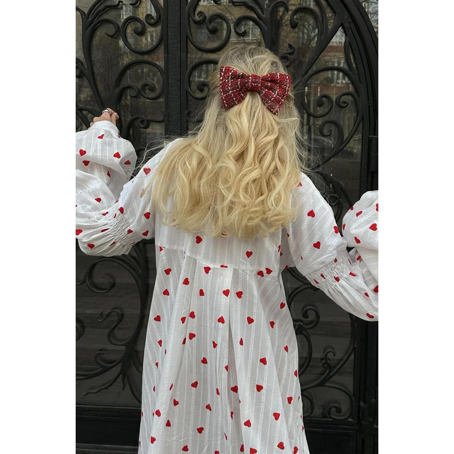 - Chic puff sleeves adding a vintage vibe