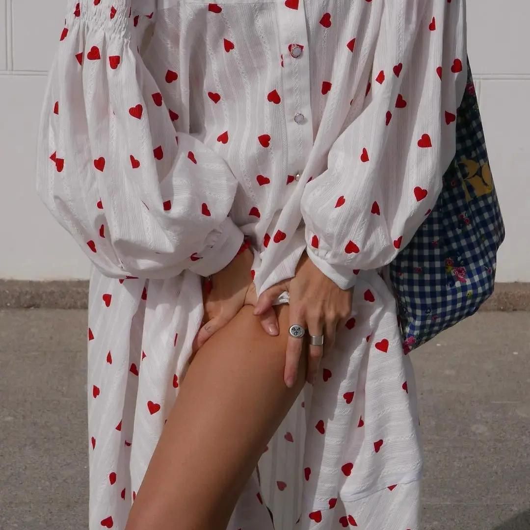 Step into a world where comfort meets style with our Heart Print Cotton A-line Long Sleeve Summer Dress. Designed for the modern woman who cherishes both style and comfort, this dress is a testament to timeless fashion. Its loose fit silhouette ensures a flattering look for all body types, making it a versatile addition to any wardrobe.