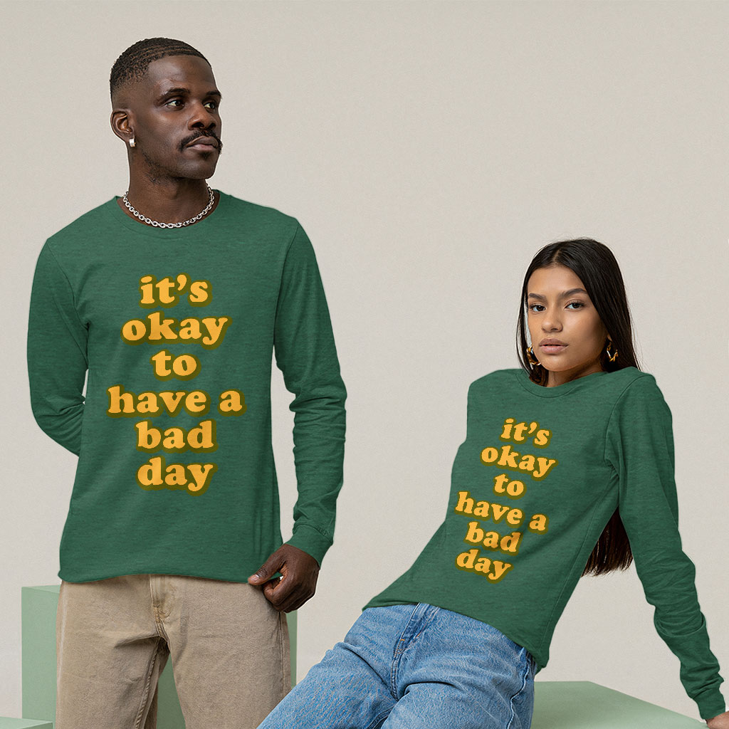 It’s Ok Long Sleeve T-Shirt is proudly made with 7x less water than average manufacturers, in recycle-friendly facilities that also guarantee zero sweatshop conditions. Positive is designed and printed in California.