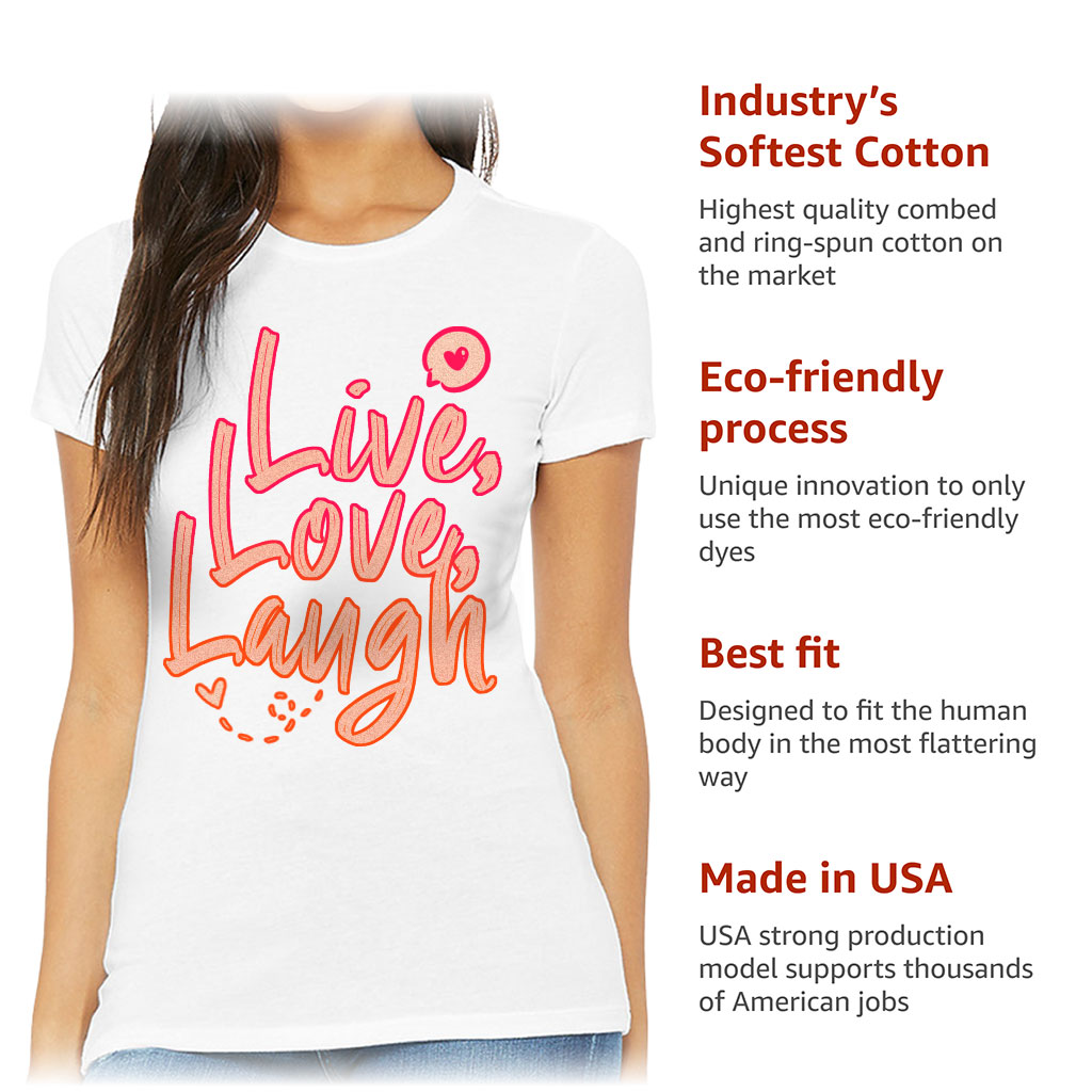 Live Laugh Love Slim Fit T-Shirt fits like a well-loved favorite, featuring a slim feminine fit, crew neck, short sleeves and superior combed and ring-spun cotton. This t-shirt feels amazing all day long. Our products provide the highest standards of quality and comfort.