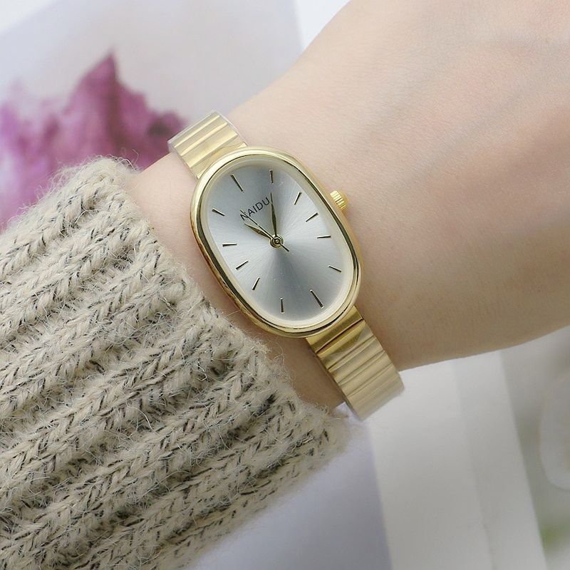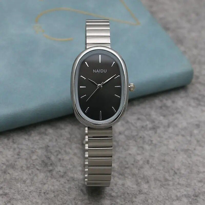 Our watch boasts a unique oval-shaped case, elegantly crafted to fit the contours of your wrist. The sleek alloy case, measuring 23mm in diameter and 8mm in thickness, houses a reliable quartz movement, ensuring accurate timekeeping.