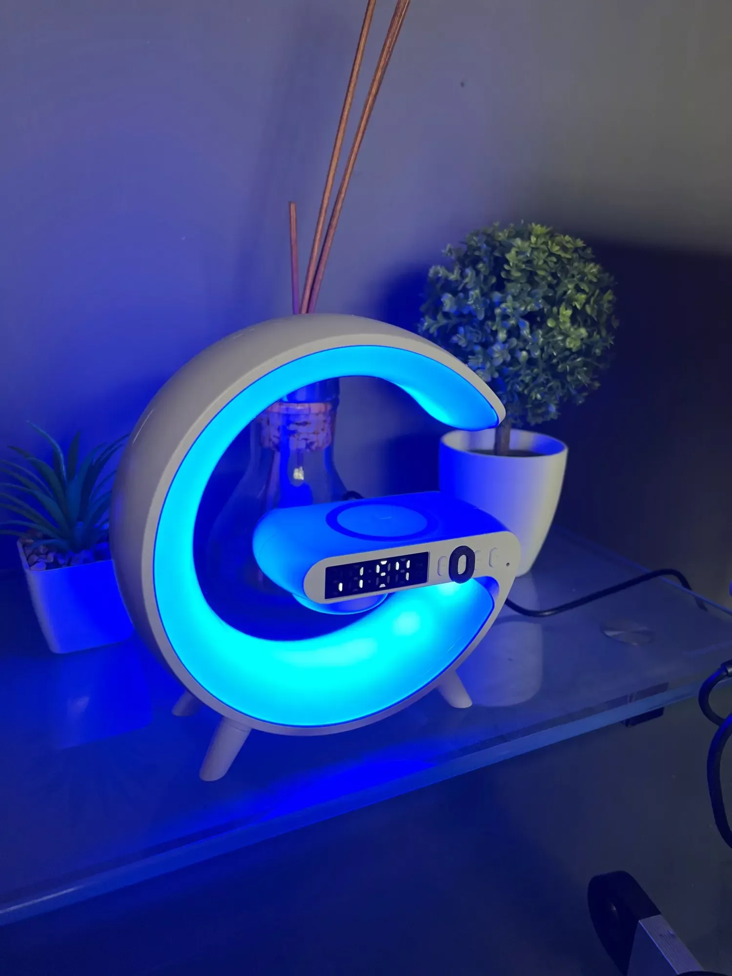 I adore this device; it’s a speaker, light, and wireless charger all in one! The colors are beautiful and the speaker has good sound quality.