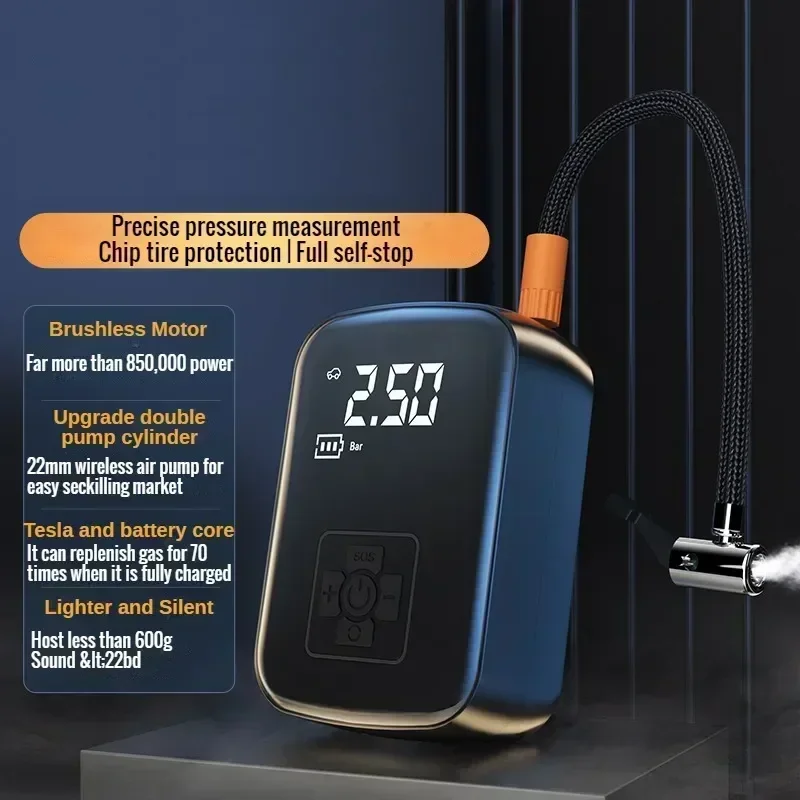 Say goodbye to the hassle of flat tires with this portable wireless electric tire pump. Designed to be your ultimate roadside companion, this compact device delivers quick and powerful inflation for car, motorcycle, and bicycle tires. With no need for bulky equipment or messy cords, it provides a seamless experience that fits perfectly into your busy lifestyle.