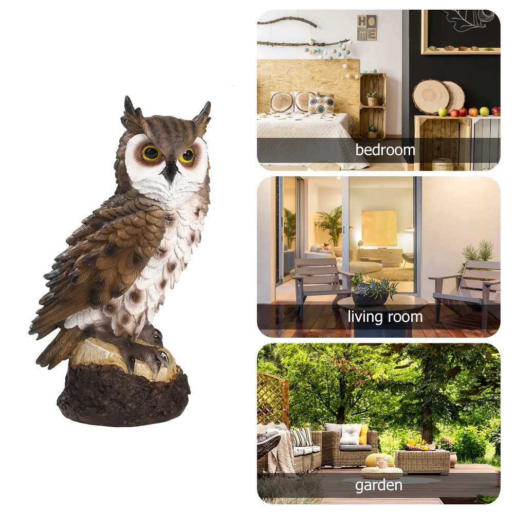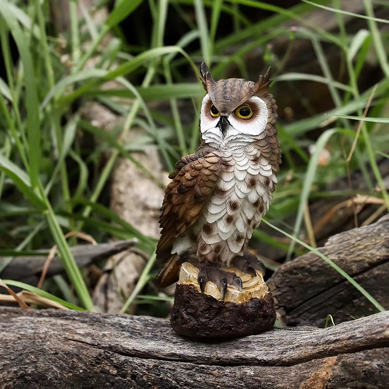 This charming resin owl is not just about looks; it comes packed with features that make it a must-have decoration for your outdoor and indoor spaces.