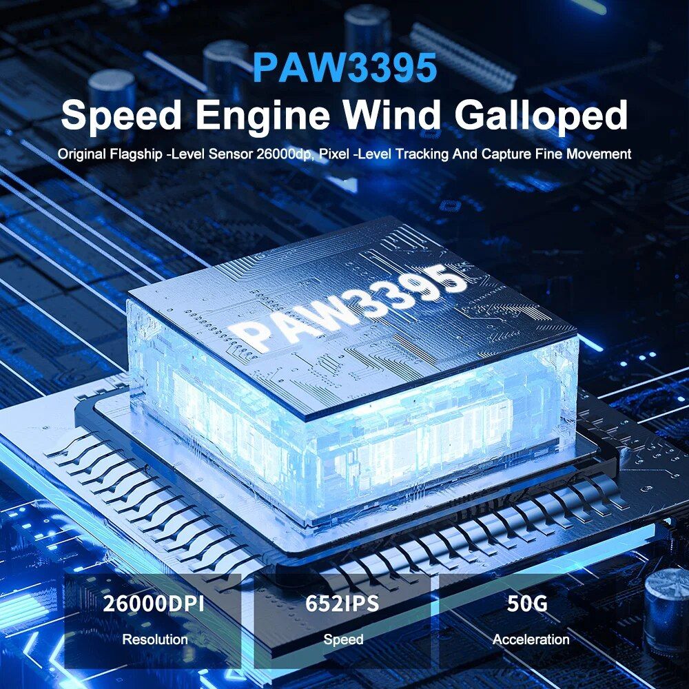 - High Precision Sensor: With a Pixart 3395 sensor, achieve up to 26000 DPI, 650 IPS, and 50G acceleration, ensuring rapid and accurate movements.