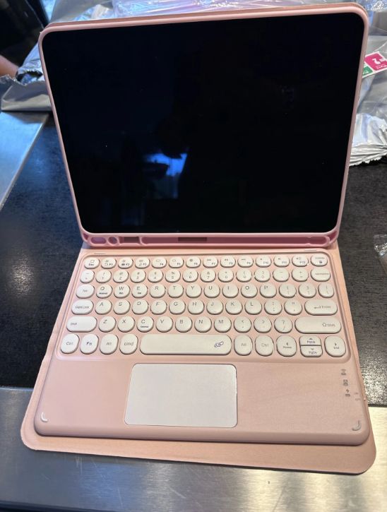Great product! It took a bit longer than a month to arrive, but I am satisfied with it. I wish the part of the case holding the iPad could be separated from the larger pink case so I could use it while drawing. However, it looks and functions exactly as expected. The seller included keyboard stickers, decorative stickers, and a protective screen glass as a bonus. Thank you.
