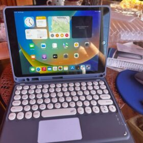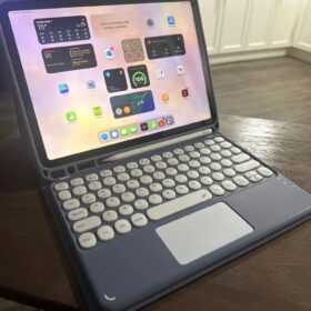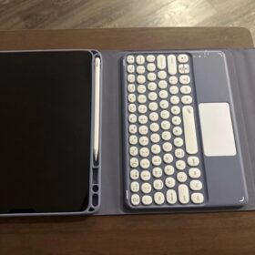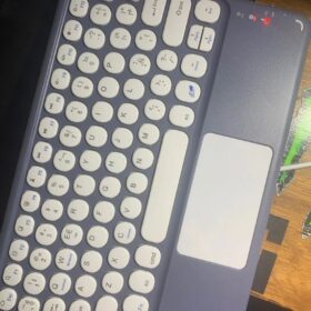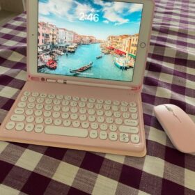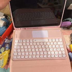 This is a must-buy for iPad users. It comes with a Bluetooth keyboard and a Bluetooth mouse. It’s lightweight and easy to carry around. I love the round keys.