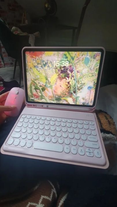 The keyboard arrived promptly! ✅️ The mouse connected instantly and can be used either via Bluetooth or USB connection. Initially, I had trouble connecting the keyboard, even with video instructions. I reached out to the seller, and they responded quickly, helping me resolve the issue. If you have the same keyboard without a touchpad and are experiencing connectivity problems, simply hold down FN + C simultaneously, and it will work perfectly! The keyboard has a pleasant keypress, and all the buttons function as they should. The case’s magnet is strong. Additionally, the seller included a protective film for the iPad and some adorable stickers as a gift. ❌: The purple color is not as pastel as expected; it’s darker and closer to gray, but it’s acceptable to me. The top of the mouse feels like cheap plastic and is quite sensitive, requiring small movements, but this might be a plus for some. ▶️ In summary, I am satisfied with the product, everything works, and the seller is helpful.