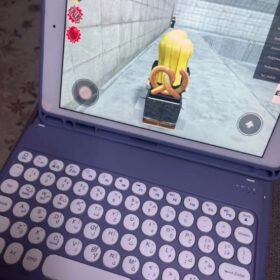 My computer is about to break, but now that I have the keyboard, I’ll start playing games like Minecraft on my iPad. The keyboard is kind of small, but I have a mini 5, so it’s okay. The texture of the case is really nice, and I like it.