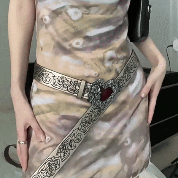 - Unique Design: The red ruby heart buckle is not just a fastener; it’s a statement, making this belt a standout accessory.